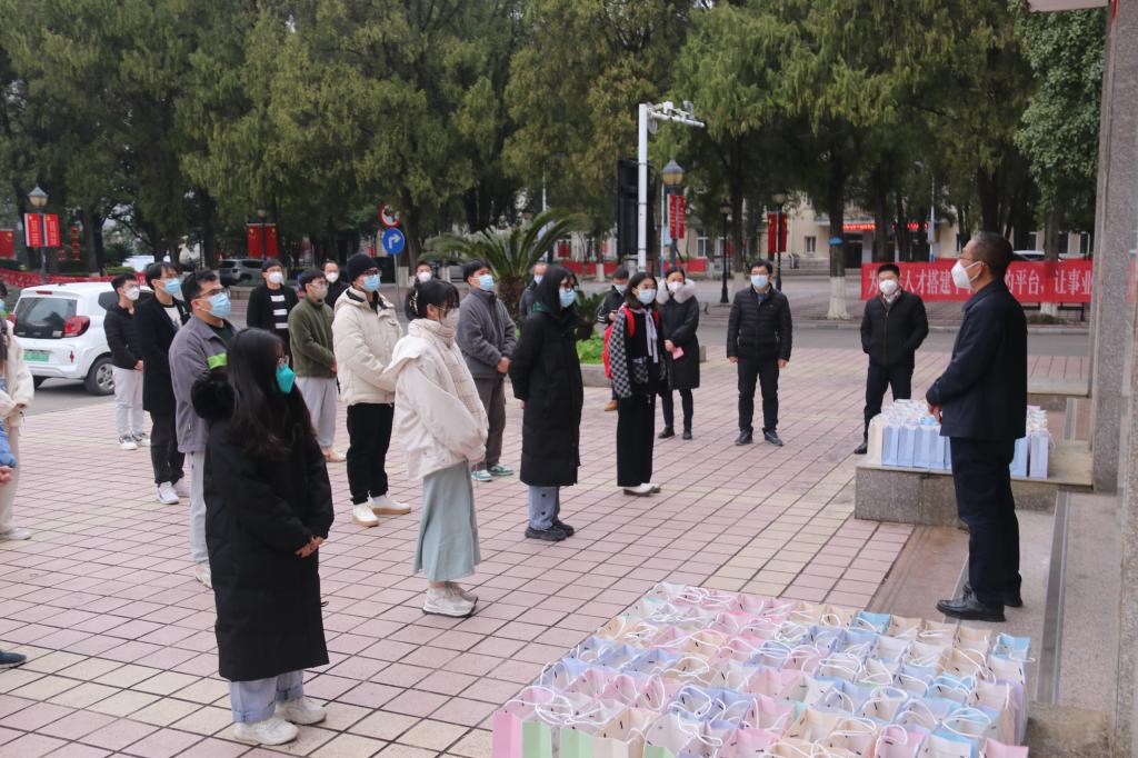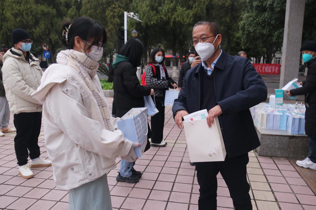 为了鼓励我院考研学子积极迎考,增强考研信心,舒缓备考压力,我院于2022年12月20日下午在屏风校区2栋门前小广场开展2023届毕业生考研暖冬活动,学院党委书记梁军、院长龙飞、党委副书记徐时、副院长张瑞、各教研室主任、班主任以及学工办的辅导员们参加了此次活动,活动由学院党委副书记徐时主持。