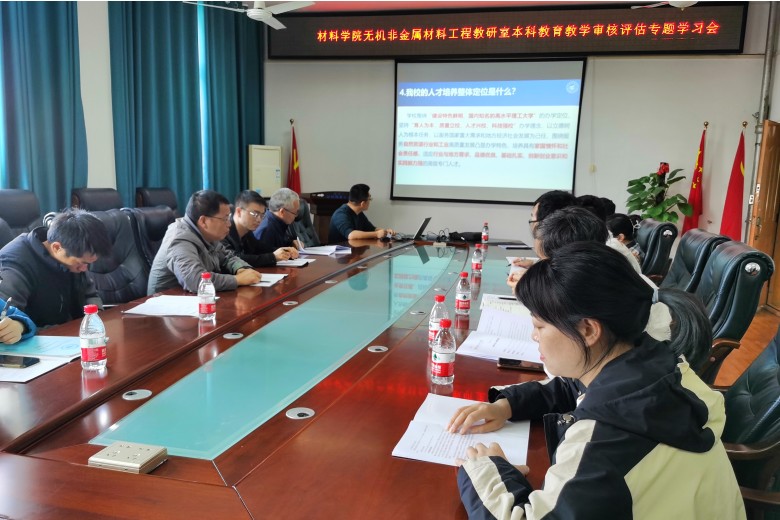 4月28日下午,我院无机非金属材料工程专业教研室在2308会议室召开本科教育教学审核评估专题学习会。会议由教研室主任王吉林副研究员主持,教研室全体教师和主管教学工作的黄孝华副院长参加了本次专题学习会。