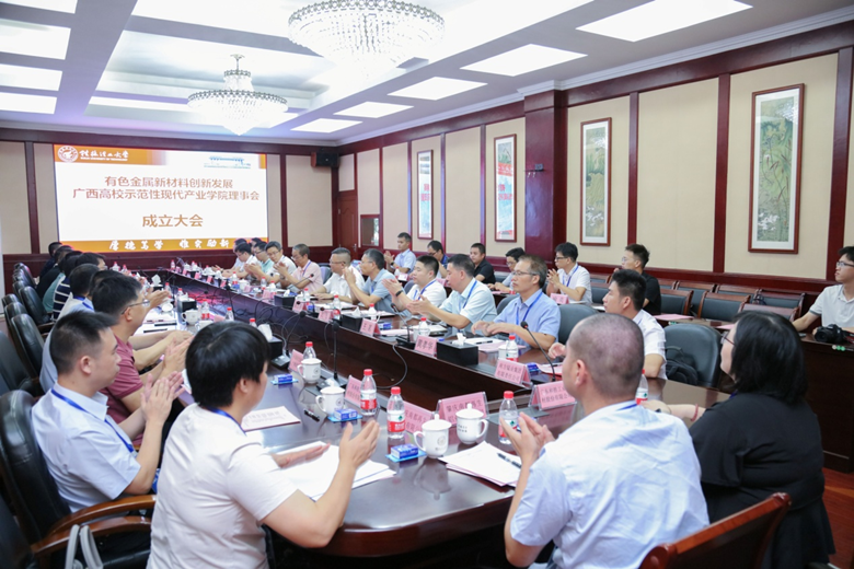 8月20日,我院在屏风校区教八楼三楼会议室举办有色金属新材料创新发展广西高校示范性现代产业学院理事会成立大会暨第一届理事会和建设发展研讨会。学校党委书记邓军出席会议并致辞。我校教务处、科技处、材料科学与工程学院主要负责人,来自区内外14家企业的相关领导和专家参加会议。
