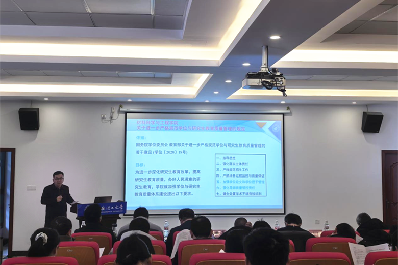 学院副院长张瑞对《材料学院进一步严格规范学位与研究生培养质量管理的规定》