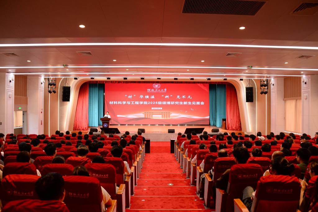 学院党委书记梁军首先致辞,他围绕“团结、诚信、感恩、责任”四个关键词,勉励新生在科研道路上既要追求真理、勇于创新,又要恪守学术道德、常怀感恩之心,将个人成长与国家材料事业发展紧密结合。学院院长周焕福通过详实的数据和案例,全面介绍了学院自1997年创办以来的发展历程、学科布局、师资队伍和科研平台建设情况,重点展示了学院在有色金属、光电材料等领域的特色优势以及在服务地方经济方面取得的突出成果。副院长张瑞则详细解读了研究生培养方案、学位授予标准及学术支持体系,为新生规划学习生涯提供了清晰指引。