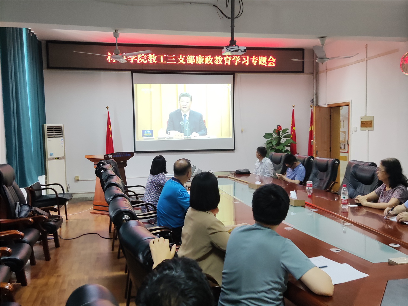 6月9日下午,材料科学与工程学院教工三支部在2308会议室召开廉政教育学习专题会。在此次学习活动中,全体党员首先回顾学习了习近平总书记在十九届中央纪委六次全会上的重要讲话《坚持严的主基调不动摇,坚持不懈把全面从严治党向纵深推进》。随后,全体党员认真学习了《中国共产党第十九届中央纪律检查委员会第六次全体会议公报》、《中国共产党纪律检查委员会工作条例》、《中国共产党广西壮族自治区第十二届纪律检查委员会第二次全体会议公报》、《中共广西壮族自治区委员会关于大力推进清廉广西建设的意见》等重要文件,并观看了相关廉政教育纪录片。
