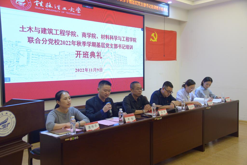 为深入学习贯彻习近平新时代中国特色社会主义思想和党的二十大精神。11月9日晚,土木与建筑工程学院、商学院、材料科学与工程学院联合分党校2022年秋季学期基层党支部书记培训在4204会议室正式开班。土木与建筑工程学院党委书记曾榕、材料科学与工程学院党委书记梁军、商学院党委书记白永生出席开班仪式,三个学院党委副书记、全体党支部书记参会以及师生党员代表参会。
