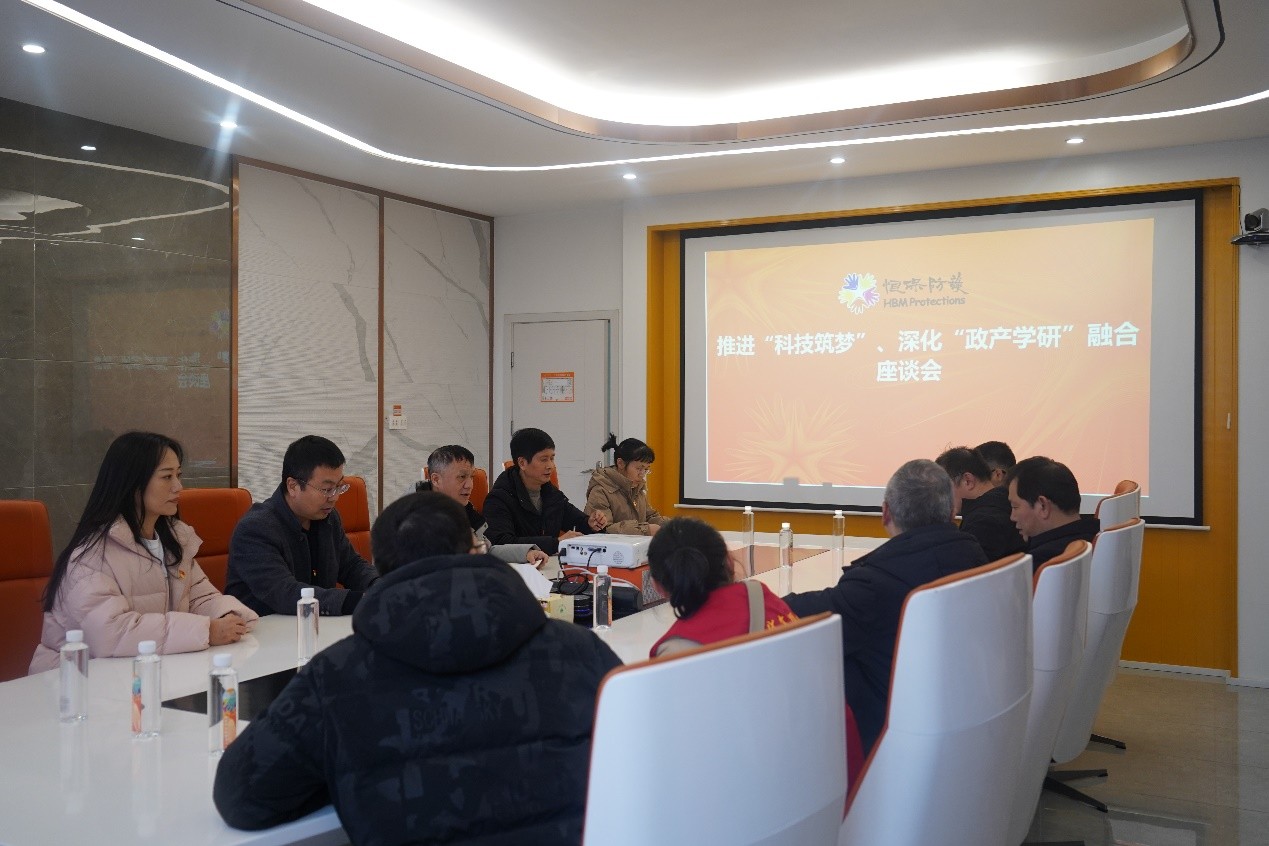 2024年12月13日下午,我院教工第二党支部、第三党支部联合桂林市科学技术局机关党支部、桂林恒保健康防护有限公司党支部,在桂林恒保健康防护有限公司开展了“科技筑梦先锋号”党建品牌共建活动。学院教工第二党支部书记李存军、第三党支部书记李裕琪,桂林市科学技术局机关党支部专职副书记,桂林恒保健康防护有限公司党支部书记李竟峰、常务副经理李国忠以及各共建党支部的部分党员同志参加了共建活动。本次活动为“科技筑梦先锋号”党建品牌共建揭牌,并围绕“推进科技筑梦、深化政产学研融合”主题进行了座谈,共同开展了党建工作研讨和技术研发合作交流。