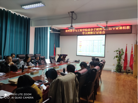 12月21日下午,材料科学与工程学院高分子教研室在2308会议室召开教研室会议,主题为依据工程教育专业认证持续改进工作精神,开展高分子材料与工程专业课程教学大纲修订研讨。会议由高分子教研室主任刘红霞同志主持,高分子教研室全体教师均按时参加了本次研讨会。