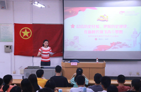 徐时老师分别从百年党史中的新民主主义革命时期、社会主义革命和建设时期、改革开放和社会主义现代化建设新时期、中国特色社会主义新时代这四个方面进行讲述,并且就党的各个历史时期的重大历史事件进行了细致的讲解,帮助大家更进一步加深对党百年奋斗历程的理解与认识。讲解期间,徐时老师引用了习近平总书记在党史学习教育动员大会上的讲话“一切向前走,都不能忘记走过的路,走得再远、走到再光辉的未来,也不能忘记走过的过去,不能忘记为什么出发”,强调我们新时代青年要积极主动加强党史的学习,任何时候都不能忘记来时路,我们回顾历史,学习党史,是为了更好的总结历史经验、把握历史规律,增强开拓前进的勇气和力量。徐书记同时启示我们掌握专业科学知识的青年要“把论文写在大地上”,学会把学识转化为实际价值,为国家与社会贡献自己的力量。