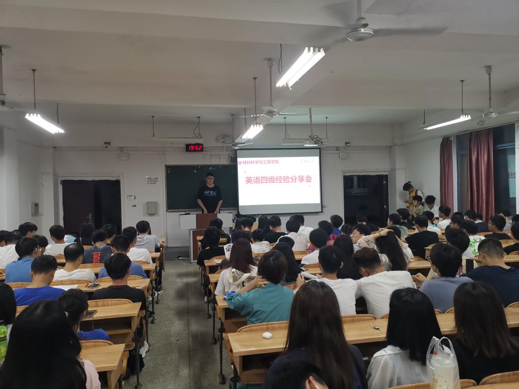 为提高同学们英语学习效率,扩大英语知识储备,助力材料学子通过四六级考试,我院于5月23日晚在雁山校区05301教室举办2021年春季学期英语四六级分享会。本次分享会由我院2020级辅导员曲怀仁老师主持,共由四位学生代表进行四级经验分享交流,我院全体学生参加本次活动。