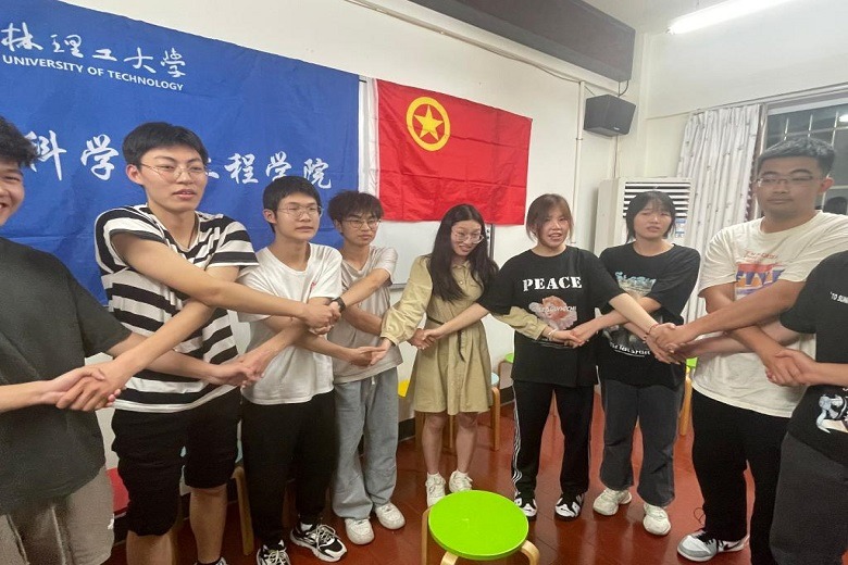 活动中,学生干部们分为三组体验了人椅、心有千千结等团辅活动。在活动上,成员们体会到了沟通交流的重要性,也明白了团队中存在着不同的角色,每一个角色对于团体稳定都非常重要。小组齐心协力攻克难关突显了团队的力量,也让成员们体悟到了团队的魅力。活动最后,成员们围坐诉说感悟,分享了学生干部活动中的快乐与心酸,唐丹婷老师以及桂鑫老师也与成员们交流了经验,并为其答疑解惑。