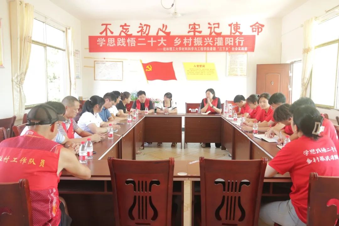 为深入学习宣传贯彻党的二十大精神,推动主题教育走深走实,充分发挥好党建引领作用,7月13日,我院“学思践悟二十大,乡村振兴灌阳行”实践团来到学院研究生第二党支部结对共建的灌阳县水车镇江塘村开展社会实践活动。