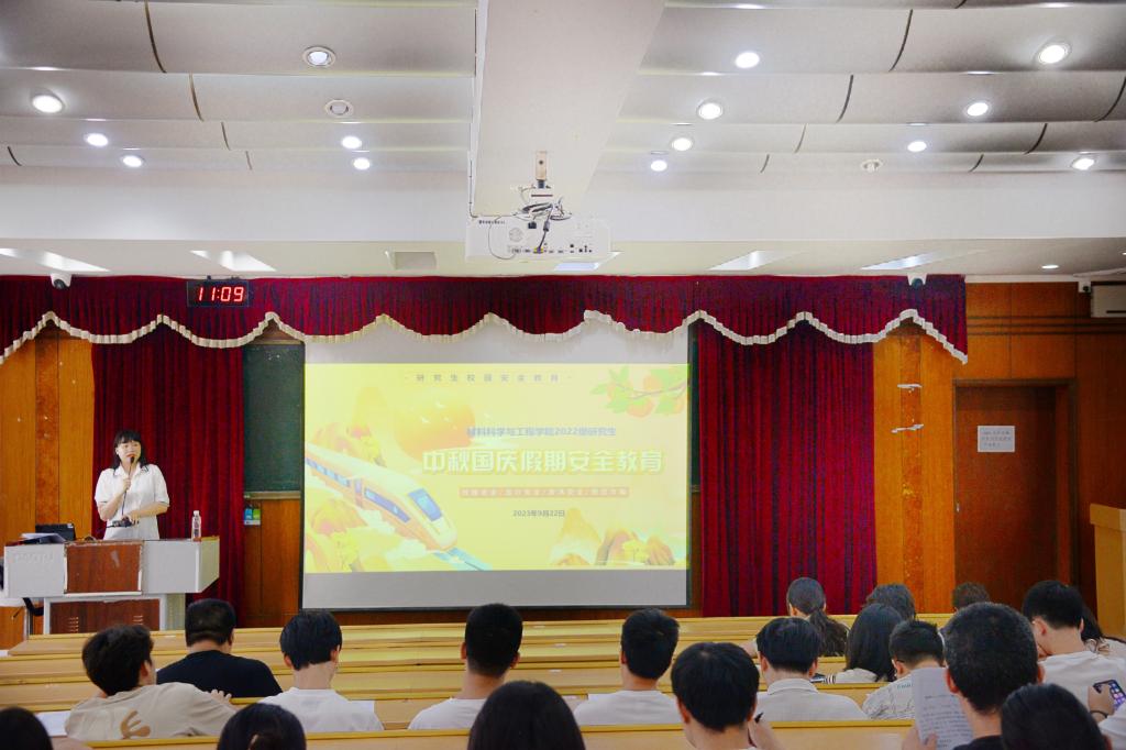 为贯彻落实学校关于国庆假期学生安全稳定工作方面的要求,切实提升研究生自我防护意识,度过一个平安愉快的假期。2023年9月22日,材料科学与工程学院组织召开研究生中秋国庆假期安全教育大会,会议由各年级辅导员主持,学院全体研究生参加。