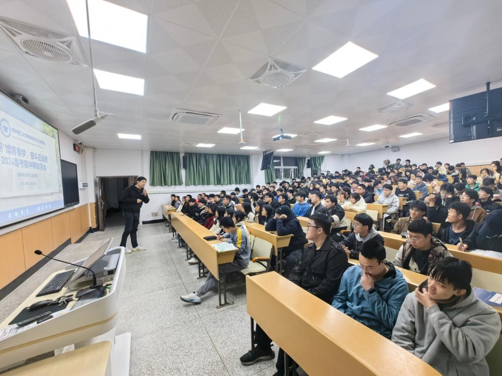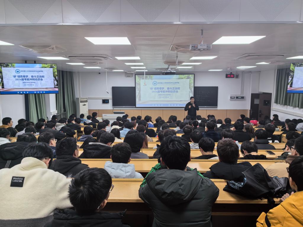 2023年12月3日晚,材料学院在屏风校区9607教室成功举办考研冲刺动员大会。学院党委副书记郝文佳、本科辅导员老师曲怀仁以及全体2024届本科考研学子参加了本次活动。大会由曲怀仁主持。