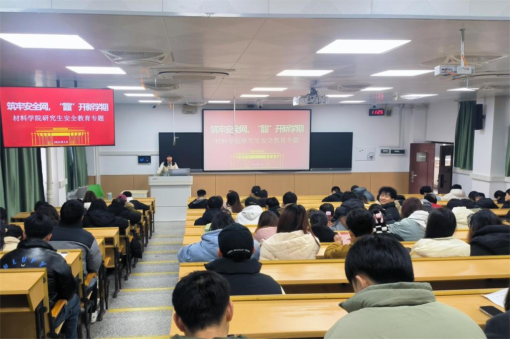 为使安全教育真正走进学生心中,增强学生自我保护意识,树立“生命第一,安全至上”理念。2024年3月3日,材料科学与工程学院组织召开新学期研究生安全教育大会,进一步增强研究生安全防范意识,保障校园安全。会议由各年级辅导员主持,学院全体研究生参加。