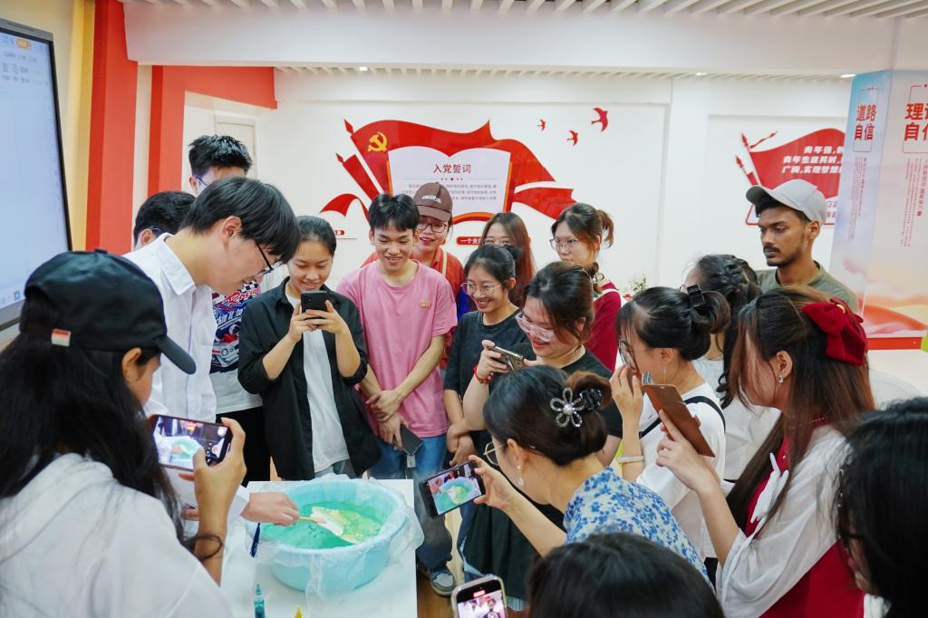 为深入学习宣传贯彻习近平文化思想,深入贯彻落实党的二十大精神,全面贯彻落实“强国复兴有我”群众性主题宣传教育活动相关要求,扎实推动中华优秀传统文化的传承发展和国际交流。2024年7月6日上午,材料科学与工程学院“中国历代绘画大系”古绘宣讲团在屏风校区材苑“一站式”思政大讲堂举办“感受非遗魅力”文化体验交流活动,材料科学与工程学院、国教育学院师生代表出席参加活动。