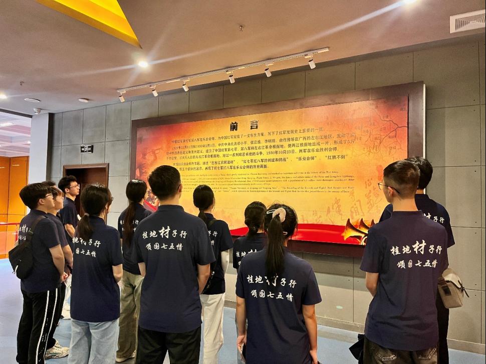 为深刻领会习近平总书记关于加强青少年爱国主义教育重要论述精神,树立爱党报国信念。2024年7月14日,桂林理工大学材料科学与工程学院“桂地材子行,颂国七五情”爱国主义教育实践团正式踏上了前往爱国主义教育的第一站——中国红军第七军第八军乐业会师纪念馆。