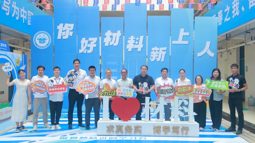 在我院的迎新工作开展地点,学校校长王敦球、副校长黎贞崇同学院党政班子全体成员细致地同迎新志愿者们了解报到情况,深入新生宿舍,与新“材料人”和他们的家长亲切交流,勉励同学们在未来的学习生活中锐意进取、不负韶华。祝愿来到材料科学与工程学院的新同学们,追梦逐光、攀峰踏浪,扬帆奋楫、笃行不辍,在材料科学与工程学院共同书写人生的华美篇章!