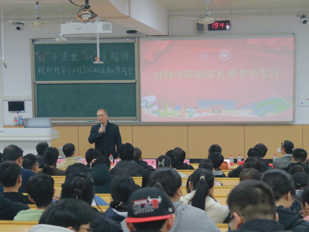 在2025年全国硕士研究生招生考试即将来临之际,为帮助考研学子坚定信心、调整状态,2024年12月5日,材料科学与工程学院2025届考研慰问会在屏风校区9201如期举行。学院党委书记梁军,学院党委副书记郝文佳,学院副院长黄孝华,材料科学与工程教研室主任田楠老师,无机非金属教研室副主任文志勤、宝石及材料工艺学教研室主任孙媛,冶金工程教研室副主任吕湘龙学院2021级班主任卢锋奇老师、刘婵娟、臧利敏、夏希悦老师出席本次活动及学院各年级辅导员,为考研学生送上诚挚的祝福,本次活动由学院党委副书记郝文佳主持。