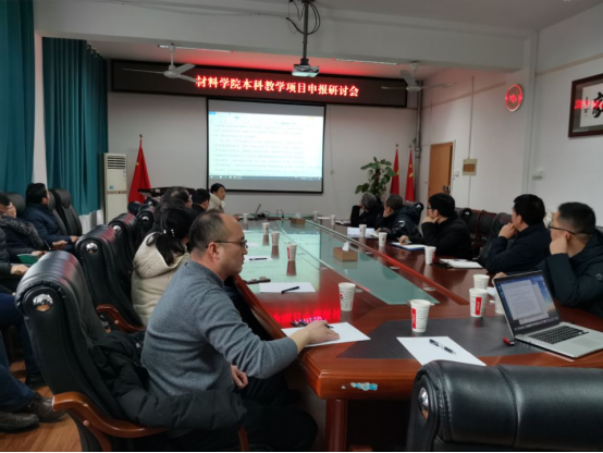 2022年1月8日下午,材料学院在2308会议室开展本科教学改革项目申报研讨会。学院党委书记梁军主持会议,教务处游少鸿、康志强、李衡,发监中心周焕福、王俊,人文素质教学部覃业飞,马克思主义学院蒋晓俊等领导作为特邀评委专家出席了会议,学院本科教学改革项目负责人和青年骨干教师参加了会议。