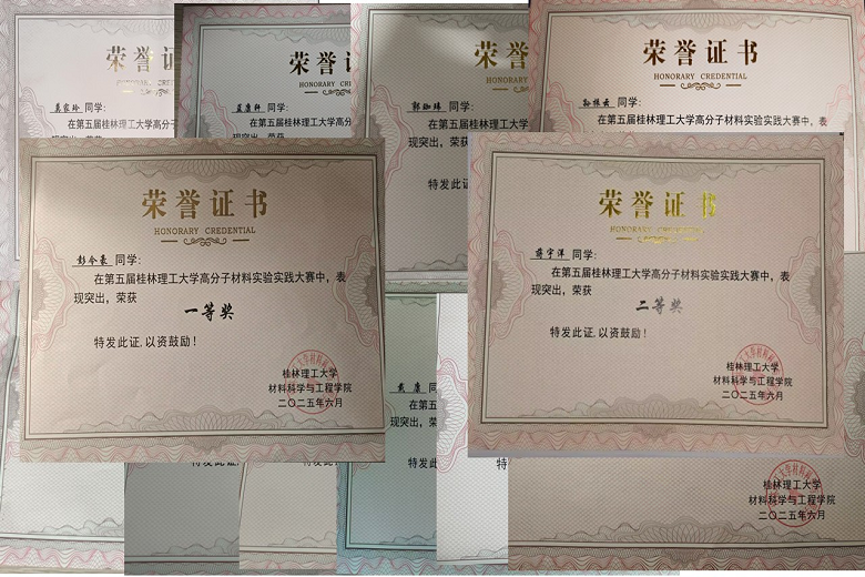 经过前四届大赛的积淀,高分子材料实验实践大赛已逐渐成为我院具有影响力的传统赛事,本次比赛共有来自材料学院高分子材料与工程专业和材料科学与工程专业23级的21位同学参加,展现了同学们对科学探索的热情和对实践能力的重视。本次比赛以苯乙烯为单体,参赛同学在规定时间内分别完成了装置搭建、聚合反应、产物处理和清理等步骤,最终得到产物成品。本次比赛得到了材料学院领导的支持,高分子教研室老师们对比赛全程进行细致评审。最终来自高分子材料与工程专业的孙振云、蓝康轩、彭令豪等六位同学获得一等奖;蒋宇洋等五位同学获得二等奖;黄少少等八位同学获得三等奖。