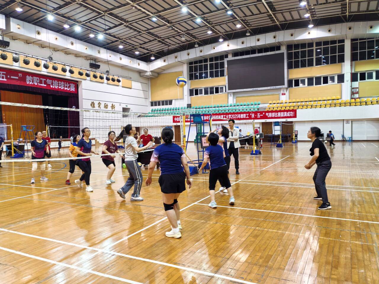 为深入贯彻党的二十大精神,喜迎中华全国总工会成立100周年,积极落实学校关于加强教职工文体活动、培育良好家风的部署要求,材料学院分工会精心组织教职工参加2025年庆“五一”教职工气排球比赛。