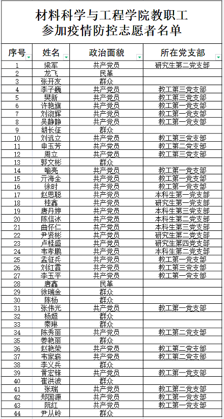 关于对学院广大教职工参加学校疫情防控工作志愿者进行表扬的通报表扬在抗击校园新冠肺炎疫情防控阻击战中,我院涌现出一批在关键时刻能站得出、顶得上、靠得住的先进代表。为激励先进、鼓舞斗志,持续弘扬正能量精神,经学院党委研究,对在疫情防控工作中主动作为、敢于担当的44名志愿者予以通报表扬2022-12-11 -