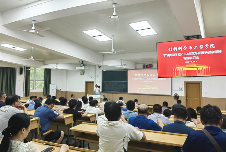 材料学院召开传达学习贯彻学校“学方略”读书班暨学校2024年改革发展研讨会精神专题学习会9月6日下午,材料科学与工程学院在屏风校区9201教室召开传达学习贯彻学校“学方略”读书班暨学校2024年改革发展研讨会精神专题学习会。会议由学院党委书记梁军主持,全院教职员工参加会议。会上,学院党委书记梁军传达了学校党委书记邓军在学校2024年发展与改革研讨会上的讲话精神和学校党委副书记、校长王敦球在会上的主题报告。根据报告内容,学院党委书记梁军为大家梳理了深入学习贯彻党的二十届三中全会精神和习近平总书记...2024-09-06 -