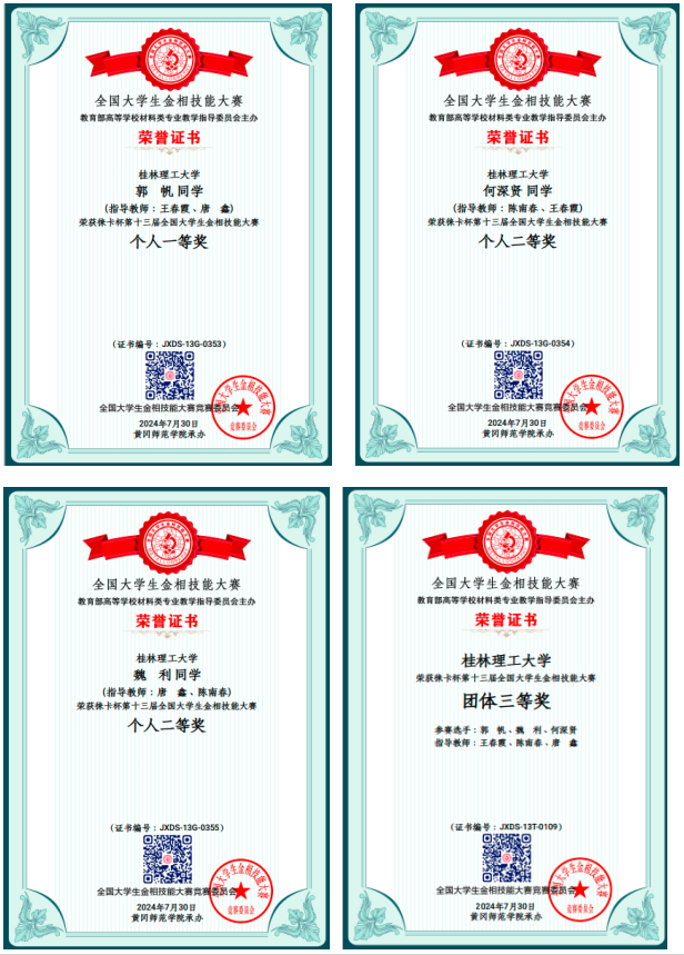 我院学子在第十三届全国大学生金相技能大赛取得佳绩7月25日至30日,由教育部高等学校材料类专业教学指导委员会主办的第十三届全国大学生金相技能大赛在湖北省黄冈市圆满落下帷幕。经过紧张激烈角逐,我校获得一等奖1项、二等奖2项,团体三等奖1项。我校教师王春霞、唐鑫、陈南春获评“优秀指导教师”。全国大学生金相技能大赛由清华大学倡议,并联合北京科技大学、中南大学等高校共同发起创办,是全国普通高校大学生学科竞赛项目,是材料类专业规格最高、制度最健全、规模最大、...2024-07-31 -