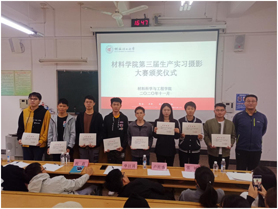 生产实习系列活动——材料学院举办2017级生产实习摄像大赛为增加同学们实习兴趣,感受企业魅力,增强专业自豪感,鼓励同学们享受实习生活,记录实习过程中的精彩瞬间,材料学院启动了本次生产实习摄像摄影大赛,同学们踊跃参加,提交了40余件作品,经过严格筛选和评比,共有8位同学获奖。2020年11月3日,材料学院在屏风校区9115教室举办了第三届生产实习摄像摄影大赛颁奖仪式,学院学工组长单江涛、部分辅导员和2017级同学们参加了本次颁奖仪式,仪式由学院辅导员桂鑫老师主持。首先,...2020-11-04 -