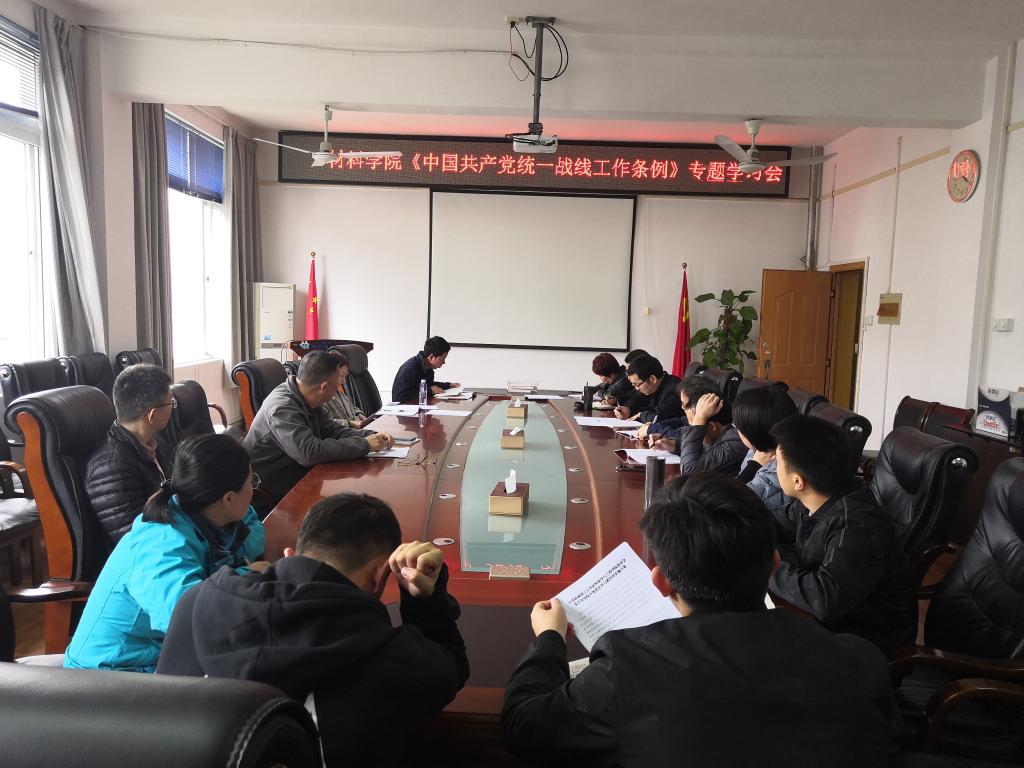 【党委中心组】学院召开《中国共产党统一战线工作条例》专题学习会为深入学习贯彻习近平总书记关于加强和改进统一战线工作的重要思想。4月6日下午,学院在2308会议室召开党委中心组(扩大)学习会,会议主题是学习贯彻《中国共产党统一战线工作条例》(以下简称《条例》)。会议由学院党委书记李治同志主持,全体党委委员、支部书记和院办主任参加。会上,学院党委统战委员王茗同志领学了《条例》。他指出,《条例》是统一战线领域的基础主干党内法规,是新时代统一战线工作的基本遵循。大家要...2021-04-07 -